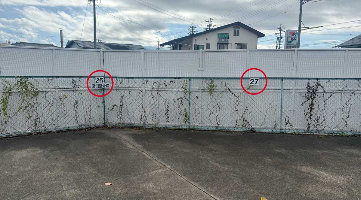 23番、24番、25番、26番、27番に駐車可能です。